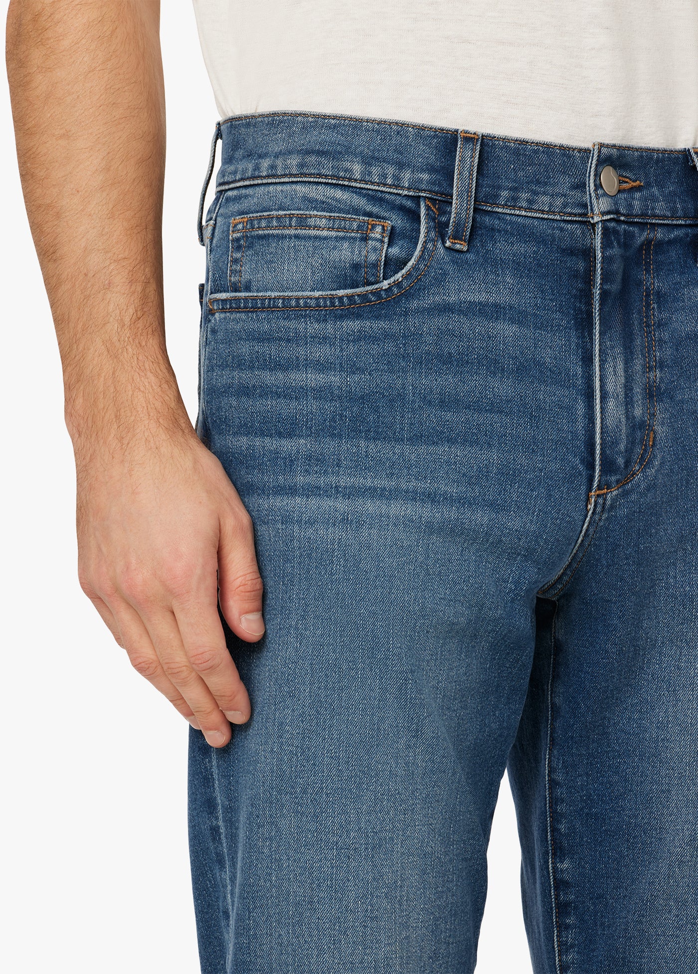 Fibras de importacion. -Un corte recto vintage confeccionado en denim cómodo. El lavado presenta un tono medio claro con una abrasión sutil. -